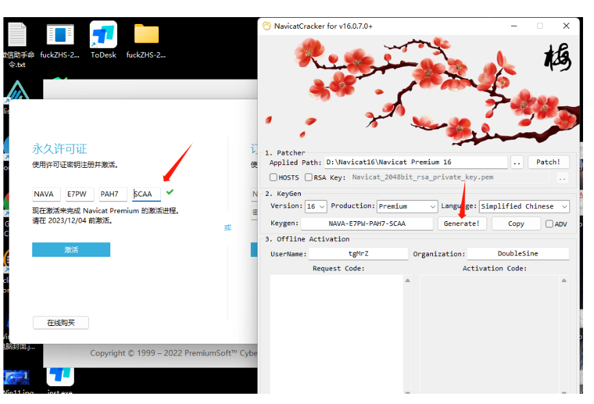 关闭电脑网络,不能联网,点击注册机的“Generate!”按钮,把Key复制过去