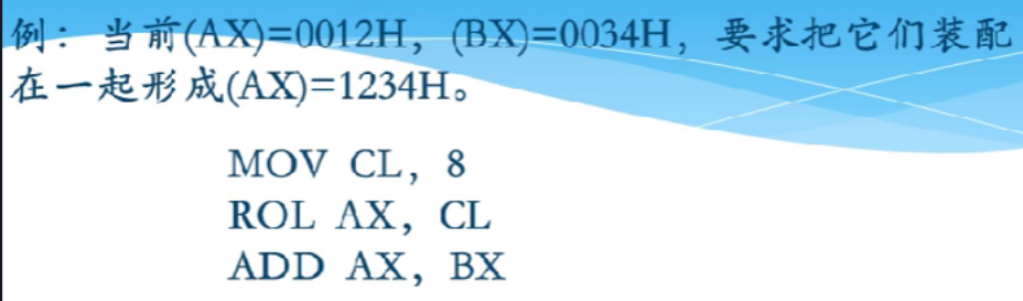 SAL AX, CL,算术左移AX4 位,移动的位数由CL决定:2468H (初始值)